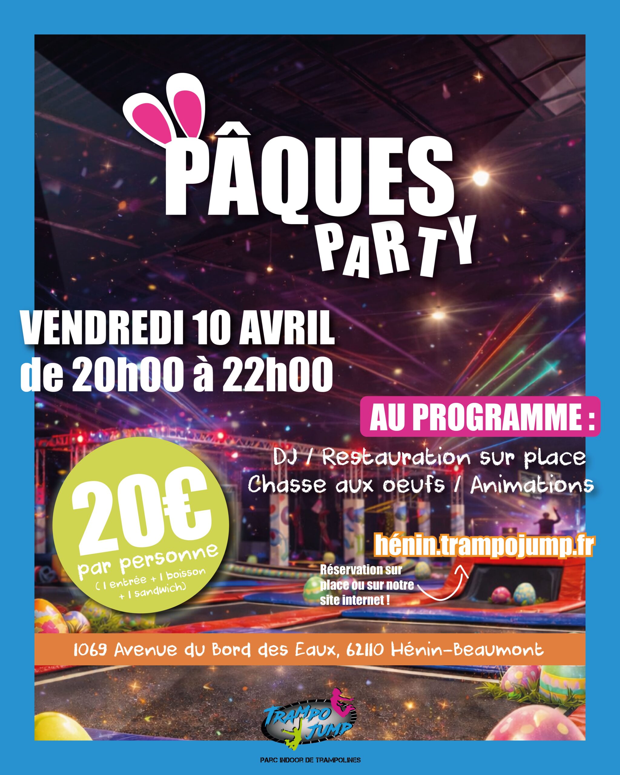 Pour éviter tout refus directement sur le Trampoline Park et vu que nous sommes limités en nombre de personnes sur les trampolines, nous vous prions de bien réserver votre session sur notre site avant de venir.
